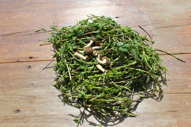 Das sind die Triebspitzen vom wilden Hopfen, die Lianen aus den Auwäldern, nahe gelegen am Fluss.