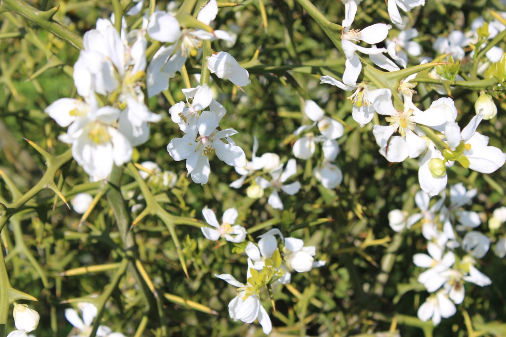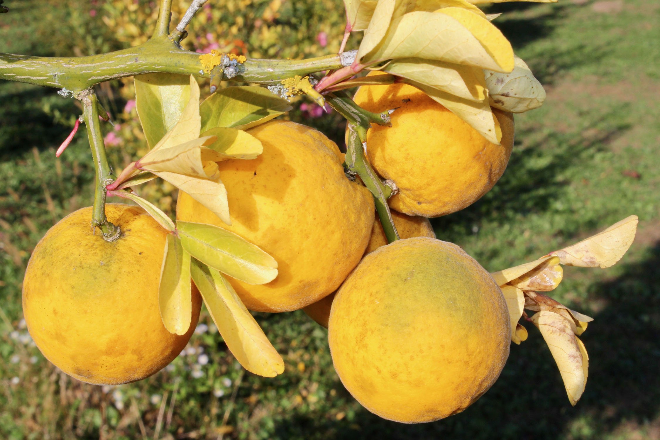 Weingartenpfirsiche und Bitterzitronen blühen erstmalig gemeinsam